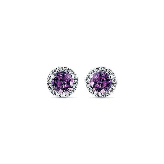EG12372W45AM Earrings 14k White Gold Diamond Amethyst Stud 14k White Gold Collection:Lusso Color