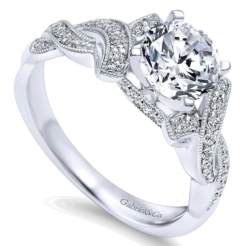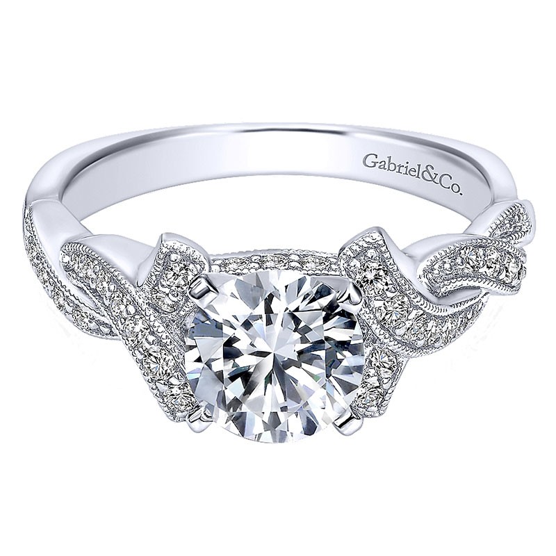 14K White Gold Diamond Criss Cross 14K White Gold Engagement Ring ER10434W44Jj