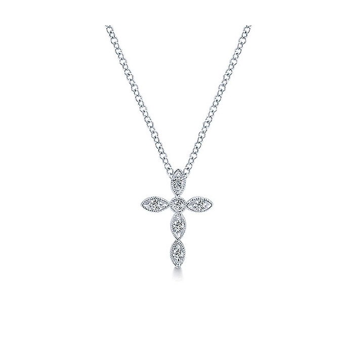 14k White Gold Diamond Cross Necklace