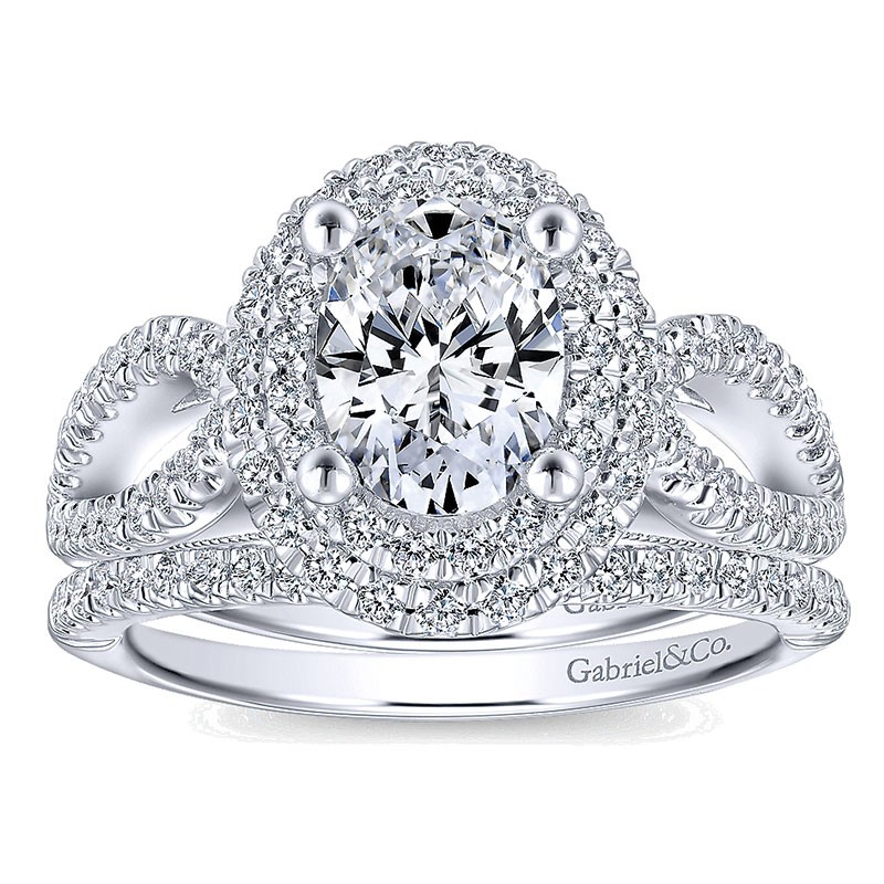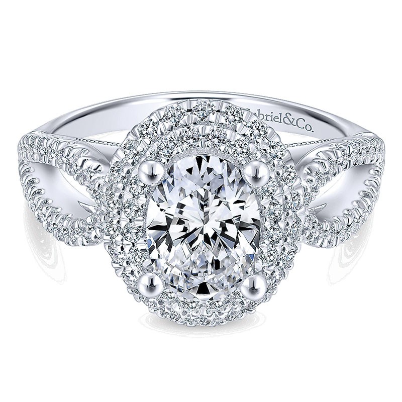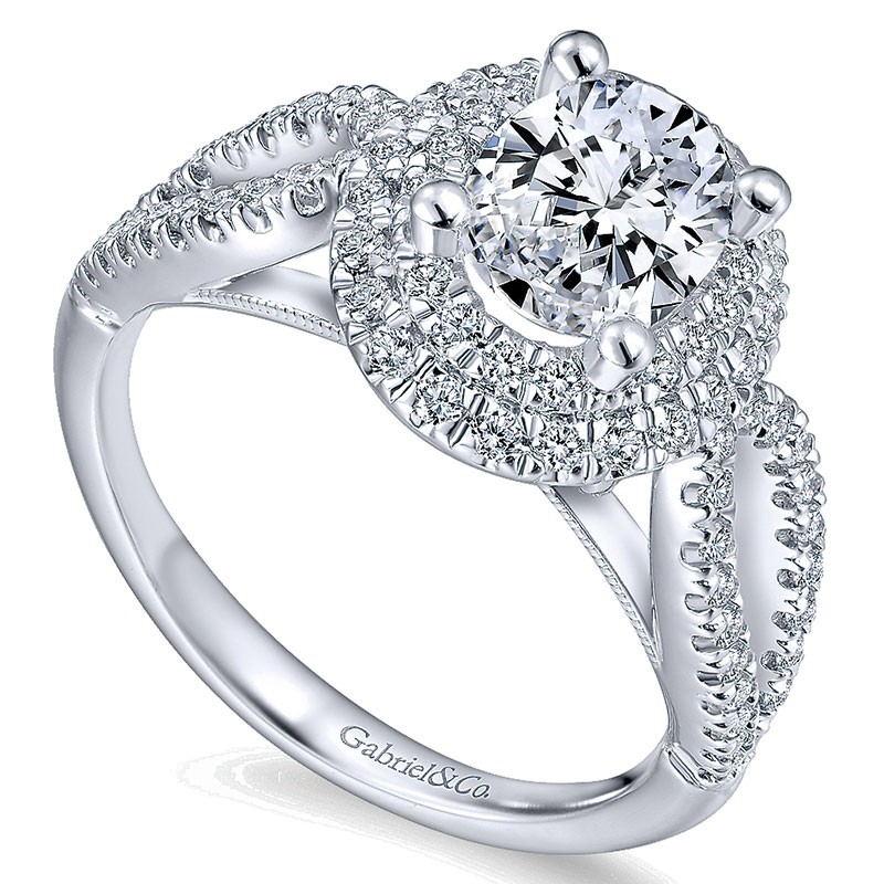 ER12648O4W44JJ Engagement Ring 14k White Gold Diamond Double Halo 14k White Gold