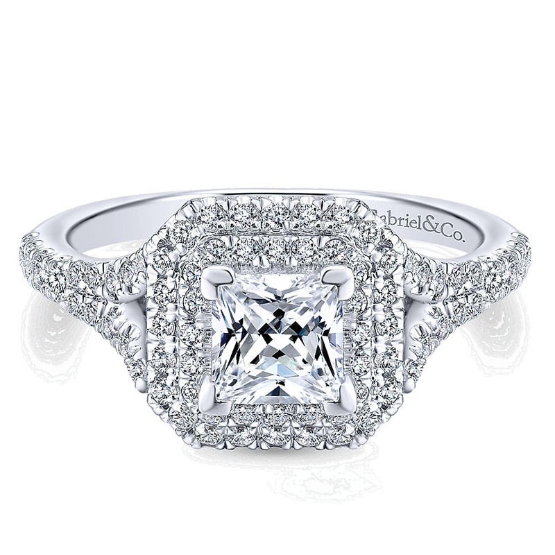 14K White Gold Diamond Double Halo 14K White Gold Engagement Ring ER12768S3W44Jj