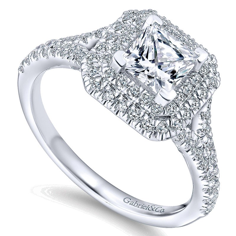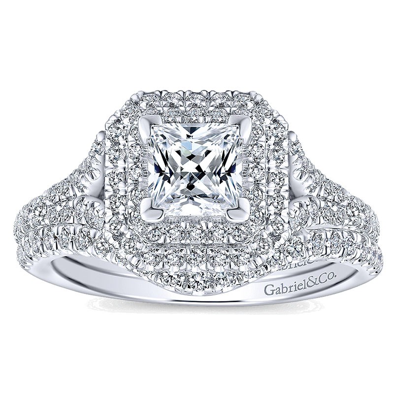 ER12768S3W44JJ Engagement Ring 14k White Gold Diamond Double Halo 14k White Gold