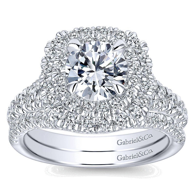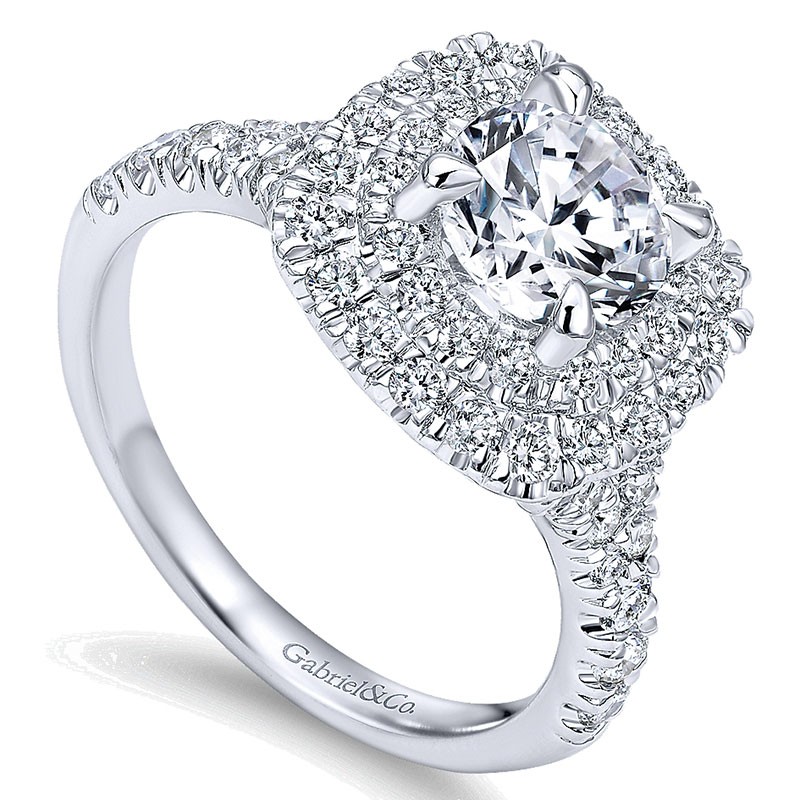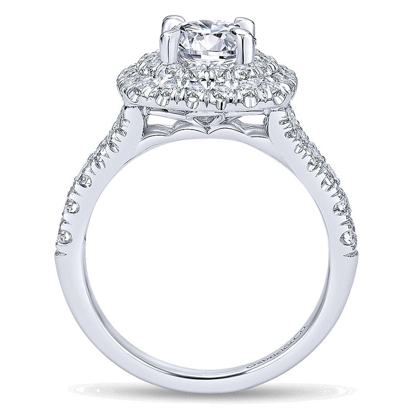 ER10754W44JJ Engagement Ring 14k White Gold Diamond Double Pave Halo Round 14k White Gold