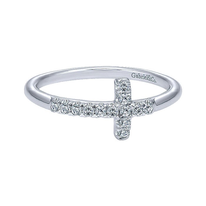 This simple and sweet white gold ring incorporates a sideways diamond cross