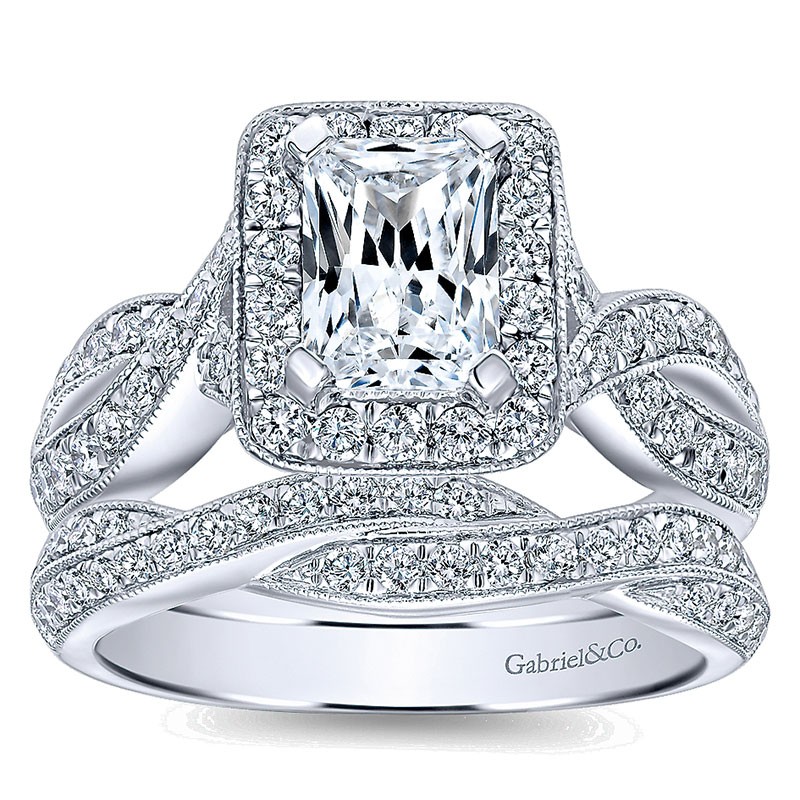14K White Gold Diamond Halo 14K White Gold Engagement Ring ER10747W44Jj