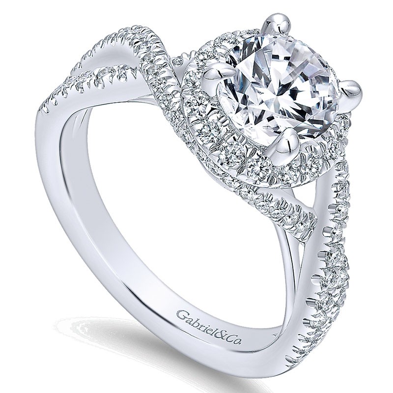 ER12594R4W44JJ Engagement Ring 14k White Gold Diamond Halo 14k White Gold