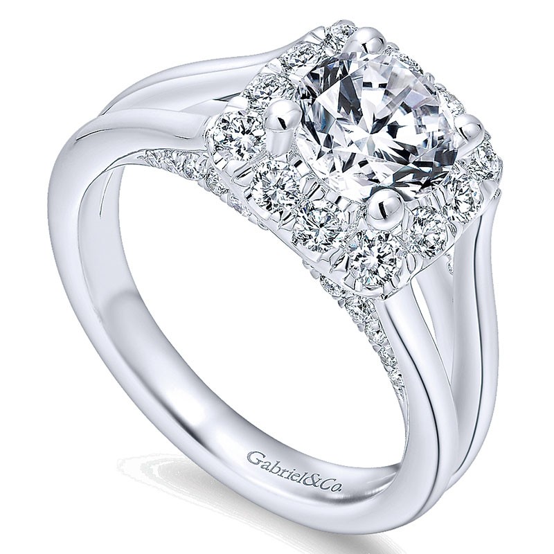 ER12605R4W44JJ Engagement Ring 14k White Gold Diamond Halo 14k White Gold