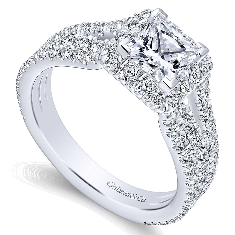 ER12632S3W44JJ Engagement Ring 14k White Gold Diamond Halo 14k White Gold