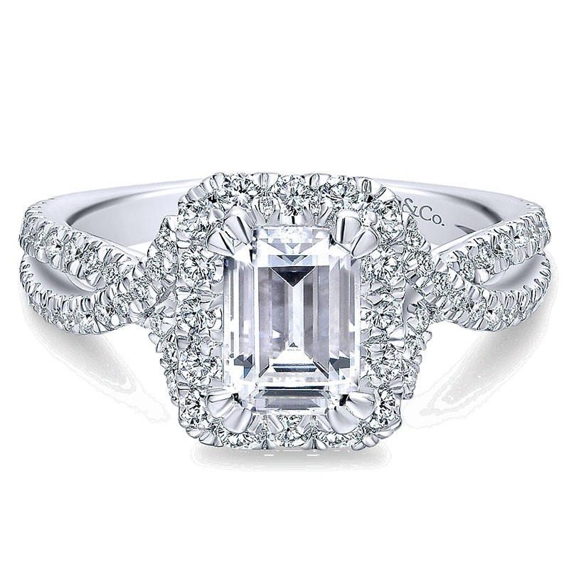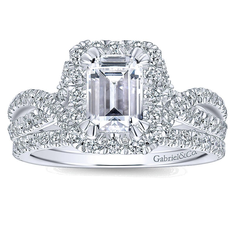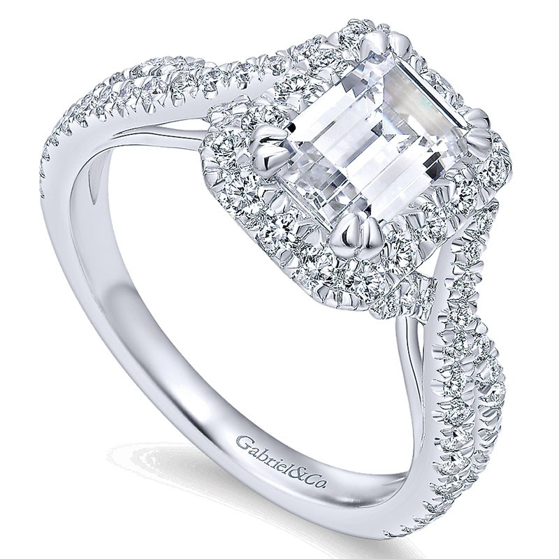 ER12636E4W44JJ Engagement Ring 14k White Gold Diamond Halo 14k White Gold