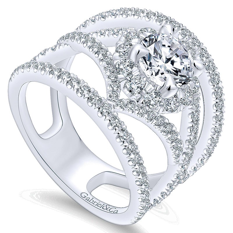 ER12646R4W44JJ Engagement Ring 14k White Gold Diamond Halo 14k White Gold