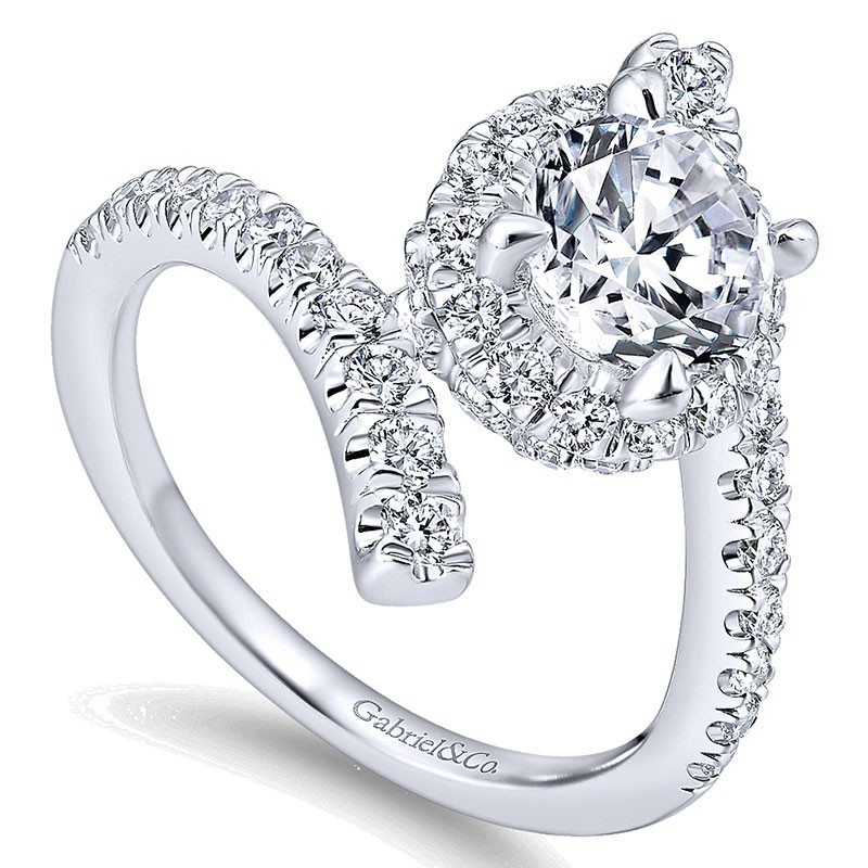 ER12802R4W44JJ Engagement Ring 14k White Gold Diamond Halo 14k White Gold