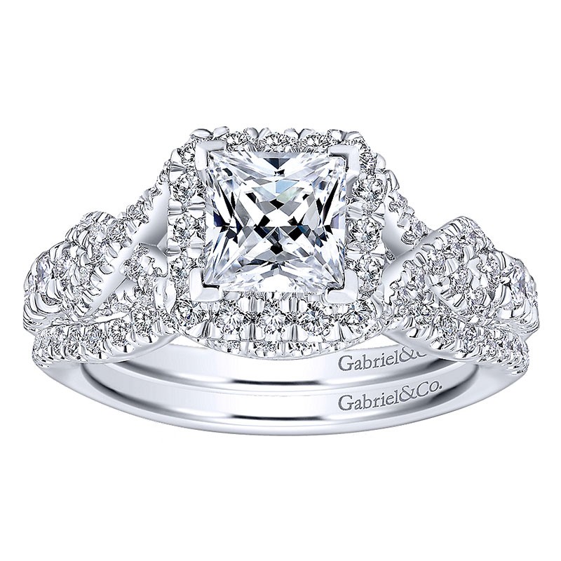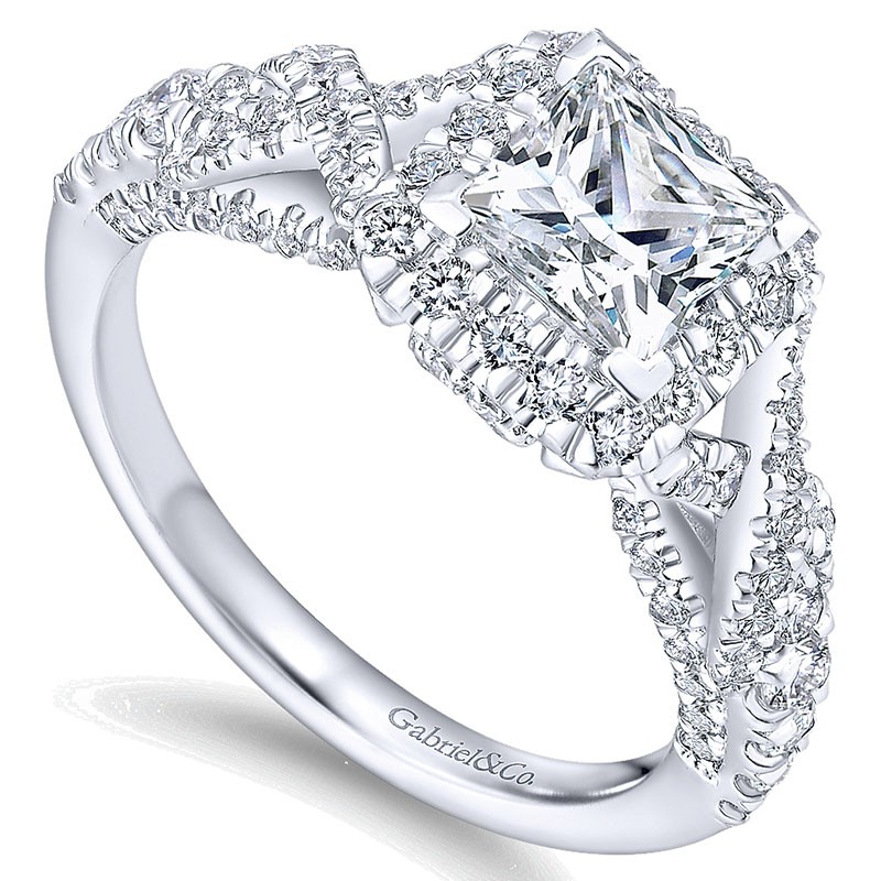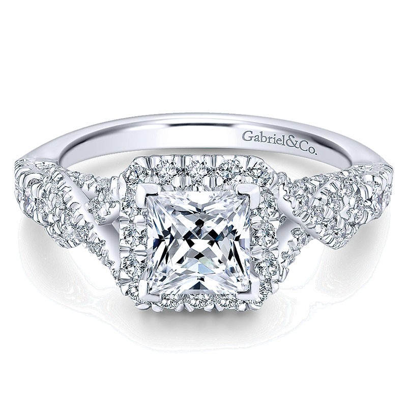 ER12966S4W44JJ Engagement Ring 14k White Gold Diamond Halo 14k White Gold