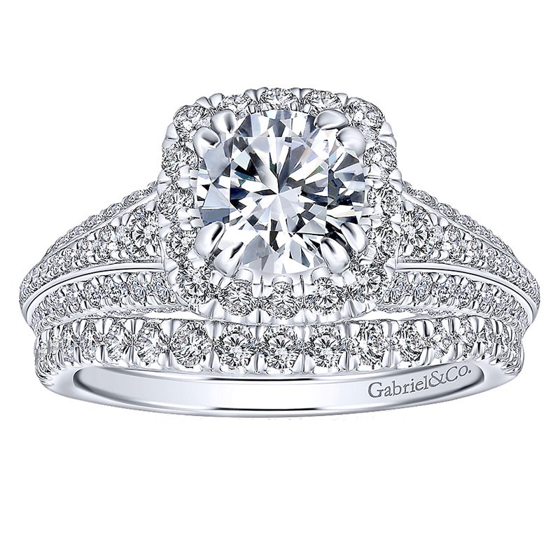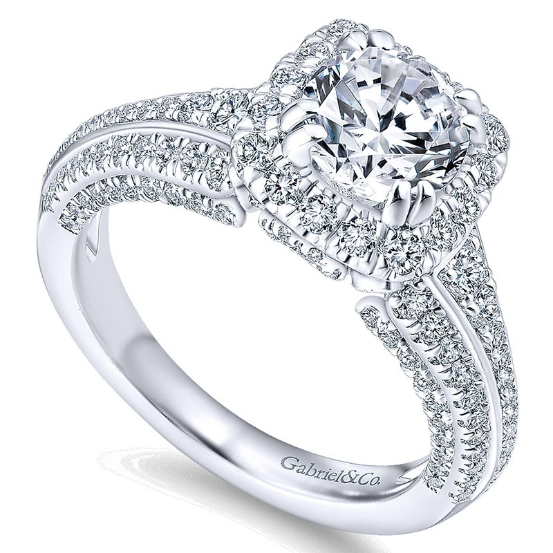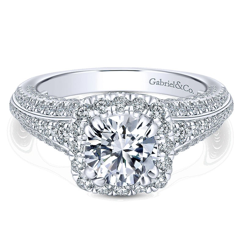 14K White Gold Diamond Halo 14K White Gold Engagement Ring ER12971R4W44Jj