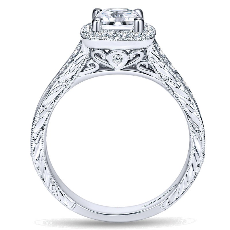 14K White Gold Diamond Halo Channel ANd Milgrain 14K White Gold Engagement Ring ER8793W44Jj