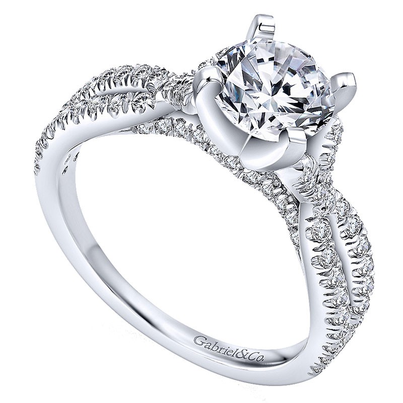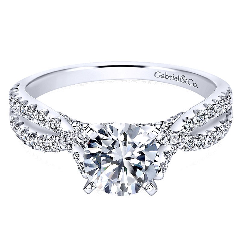 14K White Gold Diamond Pave Criss Cross 14K White Gold Engagement Ring ER7544W44Jj