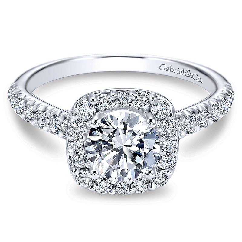14K White Gold Diamond Round Halo With Pave Shank 14K White Gold Engagement Ring ER6872W44Jj