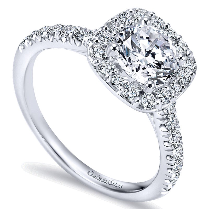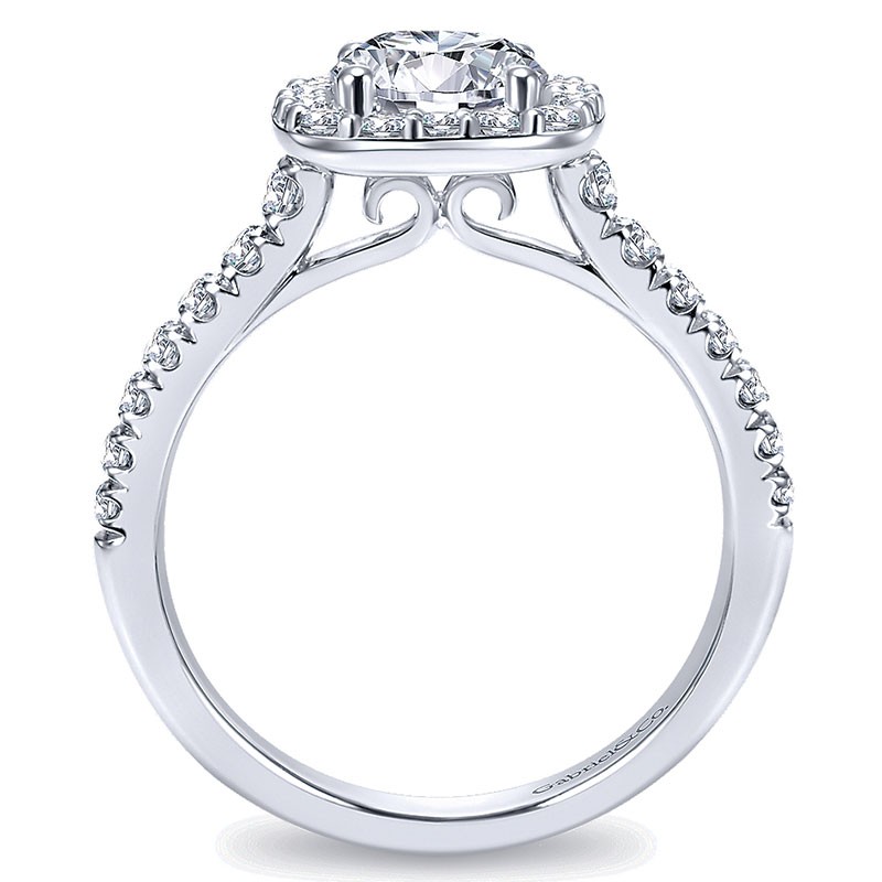 ER6872W44JJ Engagement Ring 14k White Gold Diamond Round Halo with Pave Shank 14k White Gold