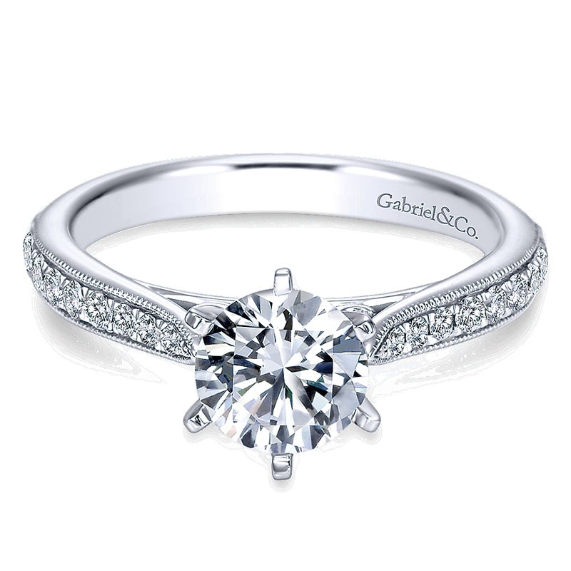 14K White Gold Diamond Straight Channel ANd Milgrain 14K White Gold Engagement Ring ER6687W44Jj