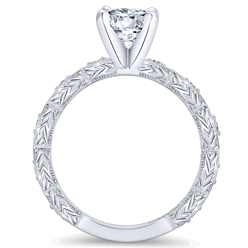 14K White Gold Diamond Straight Filgree With Round Center 14K White Gold Engagement Ring ER4122W44Jj
