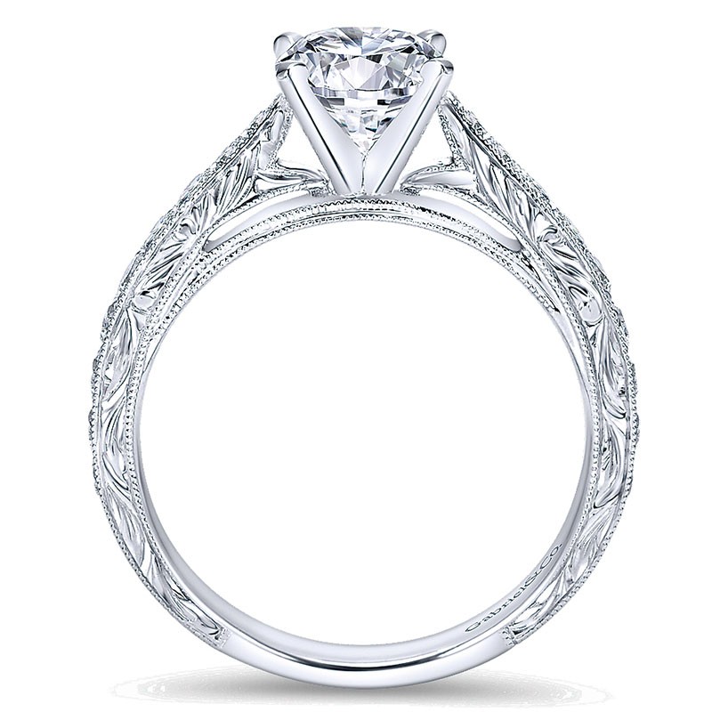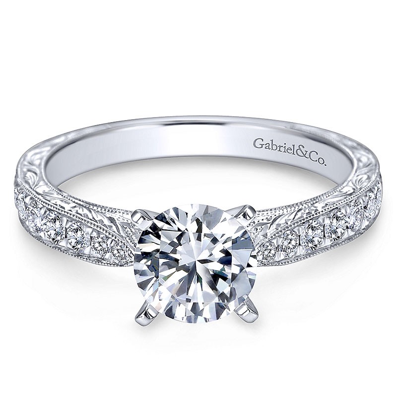 ER7529W44JJ Engagement Ring 14k White Gold Diamond Straight Milgrain and Pave Channel 14k White Gold