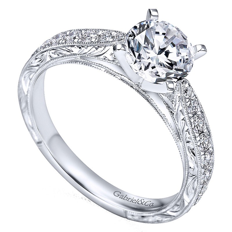 14K White Gold Diamond Straight Milgrain ANd Pave Channel 14K White Gold Engagement Ring ER7529W44Jj