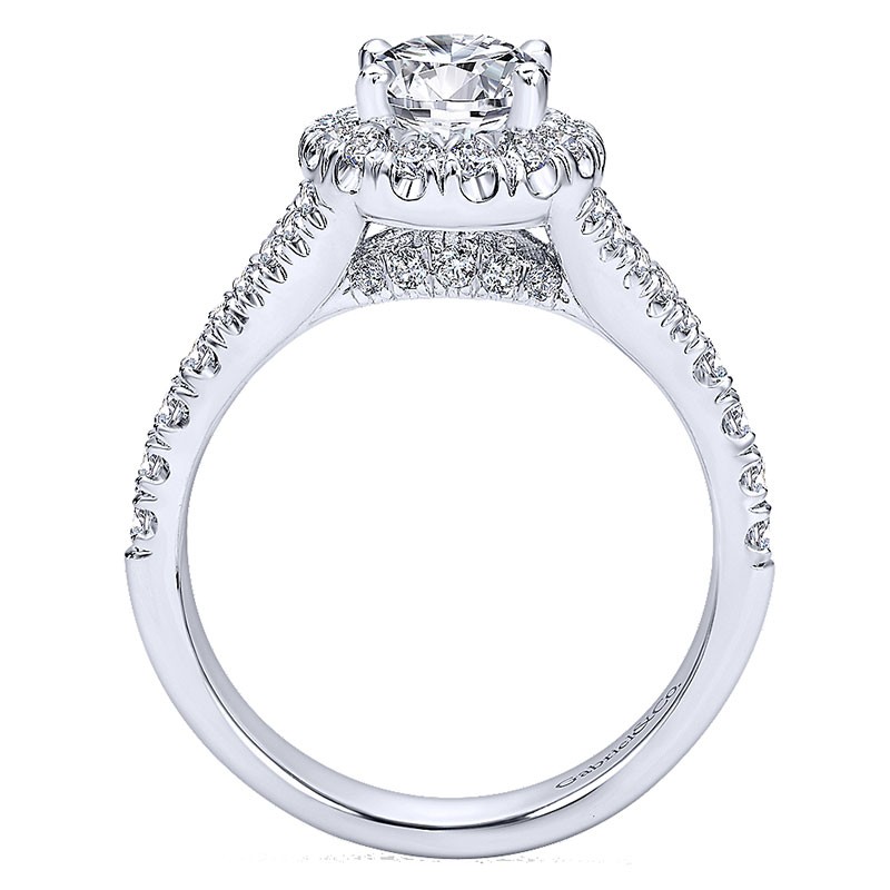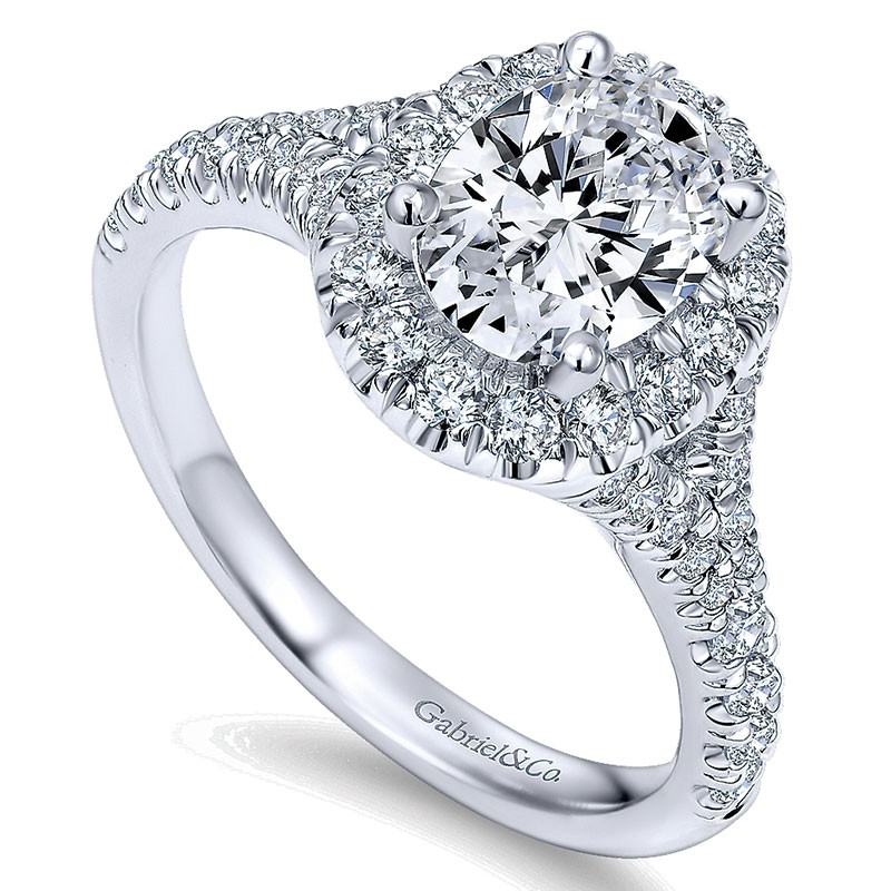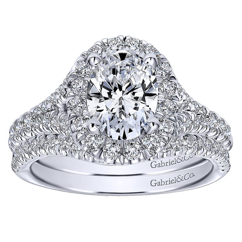 ER10291W44JJ Engagement Ring 14k White Gold Pave Shank and Oval Diamond Halo 14k White Gold