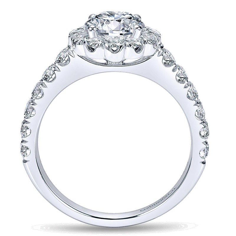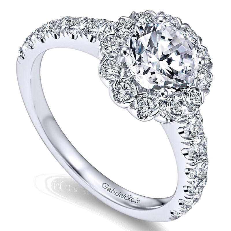 ER7292W44JJ Engagement Ring 14k White Gold Round Diamond Halo with Bold Pave Shank 14k White Gold