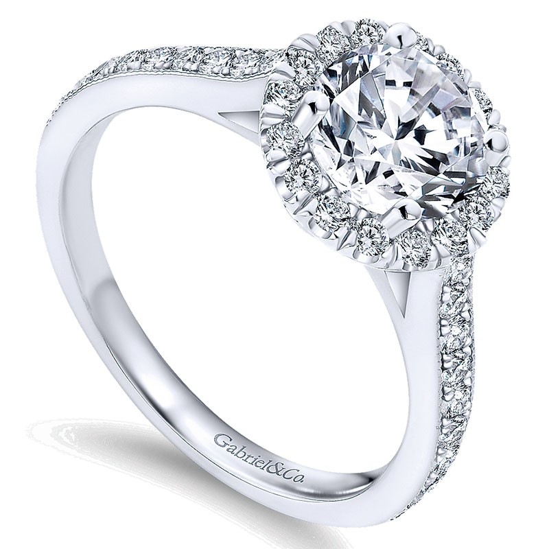 ER7278W44JJ Engagement Ring 14k White Gold Round Diamond Halo with Channel Setting 14k White Gold