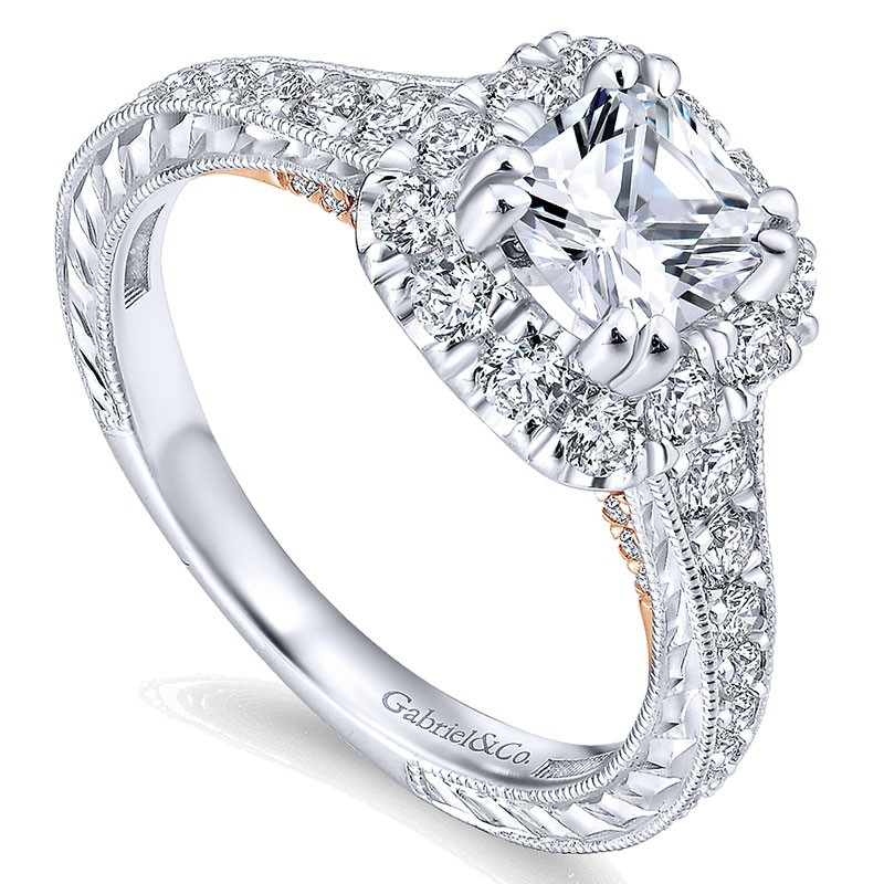 ER12827C4T44JJ Engagement Ring 14k White/pink Gold Diamond Halo Two-Tone