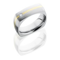 Titanium 7mm Domed Eurosquare with 14KY Inlay and Flush Set White Round Diamond
