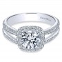 14K White Gold Round Diamond Halo Pave Split Shank 14K White Gold Engagement Ring ER7786W44Jj
