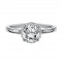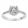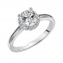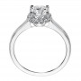 Diamond engagement ring with straight high polished diamond shank and pave diamond halo setting.
