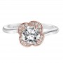 Josephina Contemporary two tone solitaire diamond engagement ring with pave diamond accents within rose gold floral halo