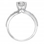 Diamond engagement ring with multi-row diamond enhanced band and bridge setting.