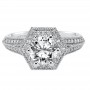 Diamond engagement ring with hexagon shaped diamond halo and diamond band