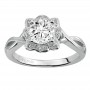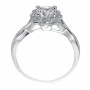 Diamond engagement ring with diamond halo and twisted polished band
