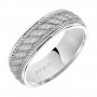 Wedding band consisting of a woven center motif and flat bright rims