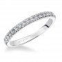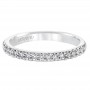 Wedding band with round prong set diamonds halfway around.