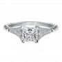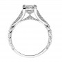 Diamond engagement ring with v-tip prong setting diamond split shank design with rope-inspired shank design.