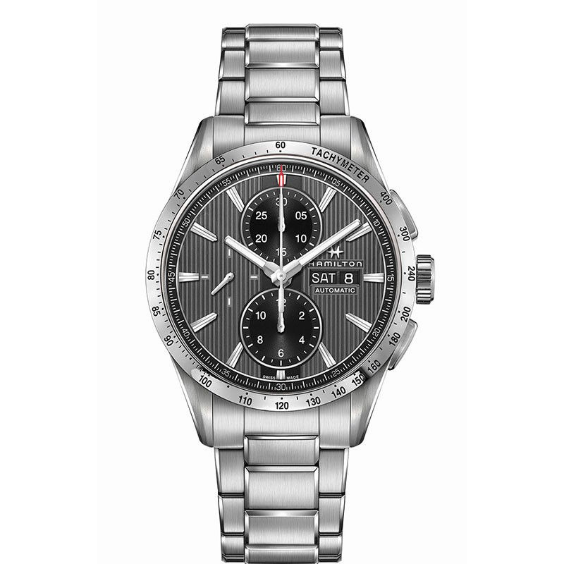 In keeping with its theatrical background, the spotlight is on the Broadway Auto Chrono with urban good looks combining a unique case design and architecture and extra-sporty tachymeter scale. An anthracite grey inner ring offsets the stylish blackness of this model, which comes with a choice of black leather strap or triple-row stainless steel bracelet.