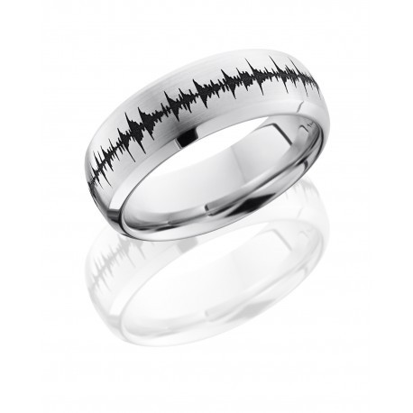 Cobalt Chrome 8mm Domed Band with Beveled Edges and Customized Laser Carved Soundwave