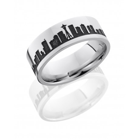 Cobalt Chrome 8mm Flat Band with Laser Carved Skyline