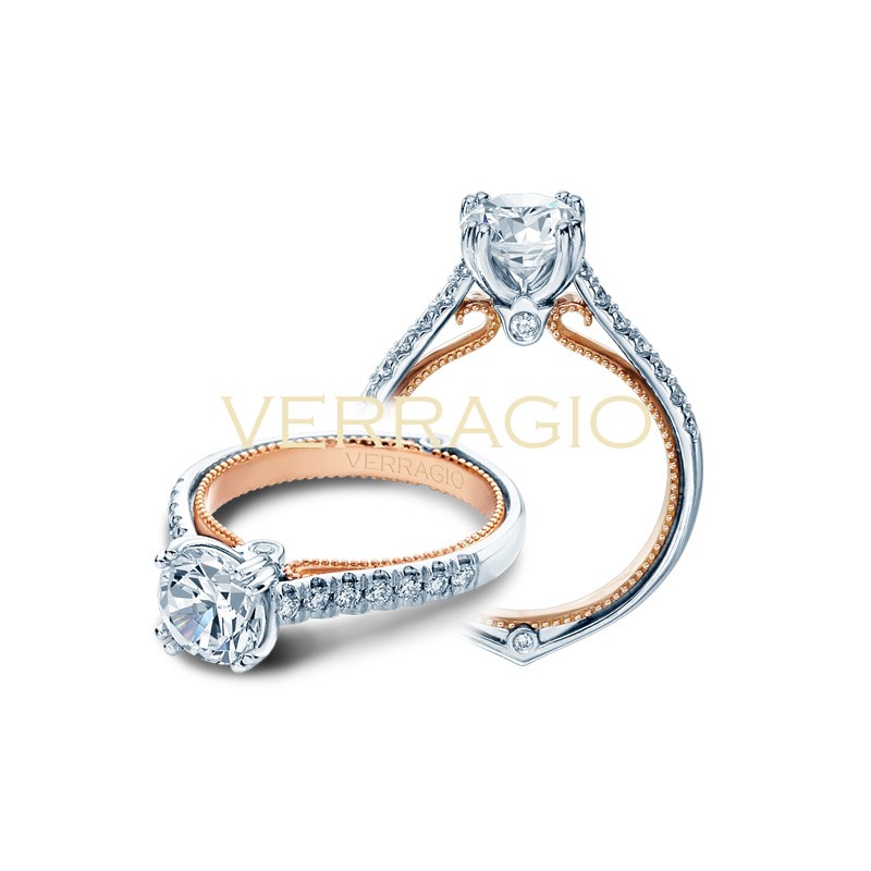 COUTURE-0412-TT engagement ring from the Couture Collection, featuring a rose gold profile and 0.30Ct. of round brilliant diamonds to enhance a round diamond center and