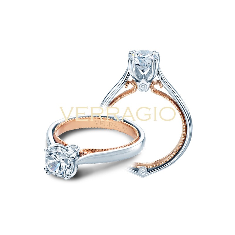 COUTURE-0418R-TT engagement ring from the Couture Collection, featuring a rose gold profile and 0.04Ct. of round brilliant diamonds to enhance a round diamond center.