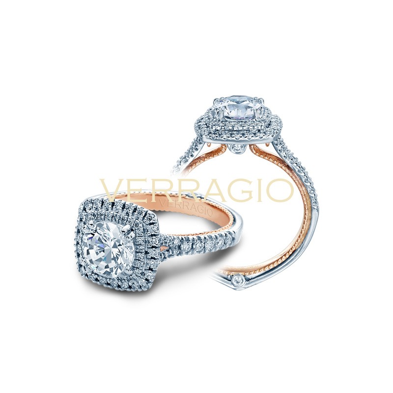 COUTURE-0425CU-TT engagement ring from the Couture Collection, featuring a rose gold profile and 0.45Ct. of round brilliant diamonds to enhance a round diamond center.