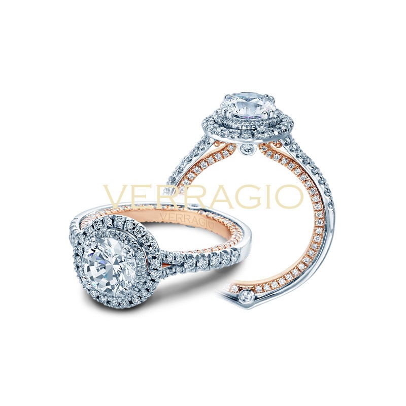 COUTURE-0425DR-TT engagement ring from the Couture Collection, featuring a rose gold profile and 0.75Ct. of round brilliant diamonds to enhance a round diamond center.