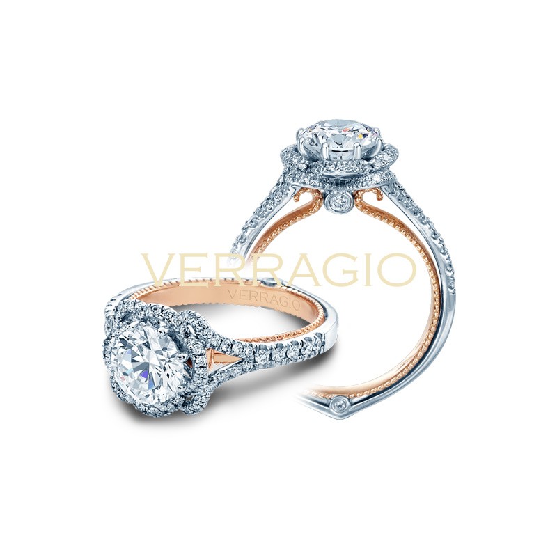 COUTURE-0426R-TT engagement ring from the Couture Collection, featuring 0.40Ct. of round brilliant diamonds to enhance a round diamond center and a rose gold profile.