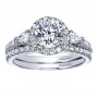 ER7506W44JJ Engagement Ring 14k White Gold Diamond 3 Stones Halo