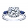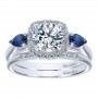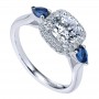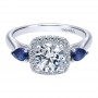 ER10785W44SA Engagement Ring 14k White Gold Diamond And Sapphire 3 Stones Halo 14k White Gold