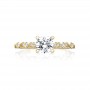 For the unconventional Tacori Bride, this yellow gold engagement ring is pure perfection. Brilliant round diamonds are set within round and square yellow gold baskets to graduate into a brilliant round center diamond. A truly perfect juxtaposition of timeless elegance and modern sophistication.